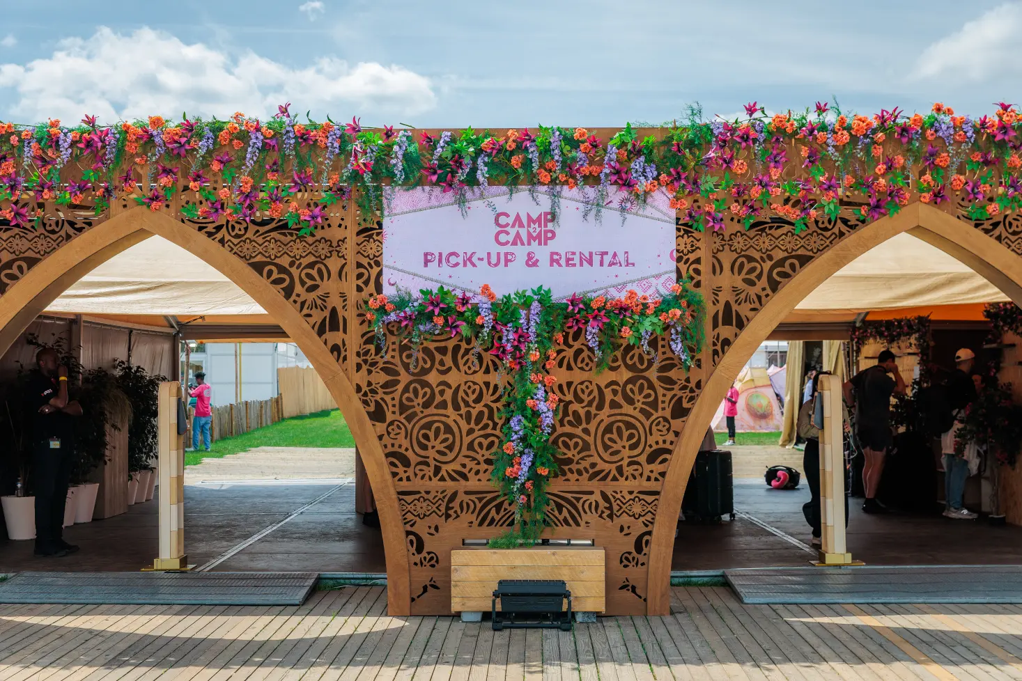 In 2025, Camp2Camp reached approximately 4,100 DreamVille visitors across two festival weekends through three rental channels: pre-pitched two-person tents, pick-up packages (single and two-person), and items available for on-the-spot rental. The core principle is simple — the more gear people rent before the festival, the less gets left behind when it's over.