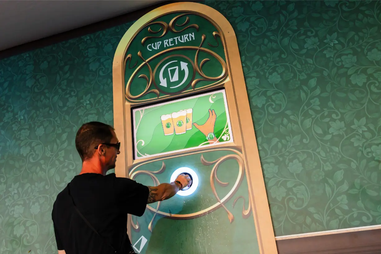 Reusable systems only function when items are returned as intended. At Tomorrowland a reusable cup is linked to the buyers wristband. When the cup is correctly returned, the deposit is directly given back to the buyer. This ensures that the buyer stays responsible for their cup.