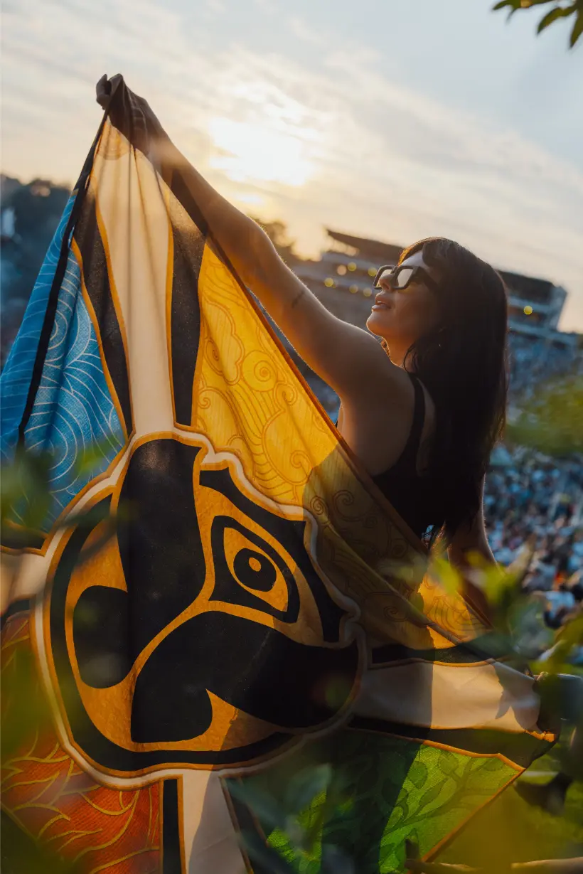 One of the latest material-focused initiatives at Tomorrowland explores how festival waste can be reintroduced into new applications. This approach is reflected in the production of the 20th-anniversary Tomorrowland festival flags, which are made from 80% recycled polyester derived from on-site plastic waste.